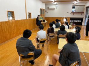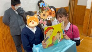 今日の紙芝居は「ももたろう」です