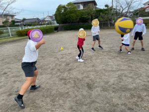 ボールを持った鬼から逃げ回るゲームも
