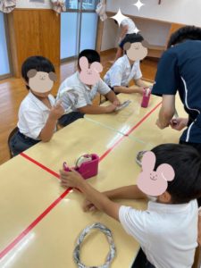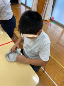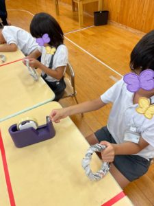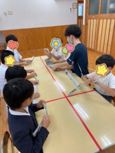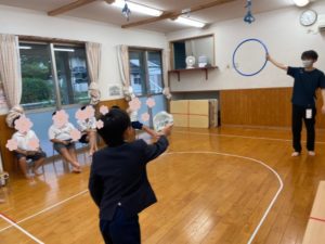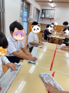 今週の活動は「新聞紙フリスビー」と題して