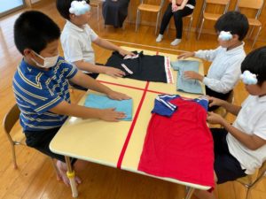 タオルや洋服をきれいに畳んだりという体験をしてもらいました👕