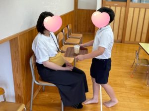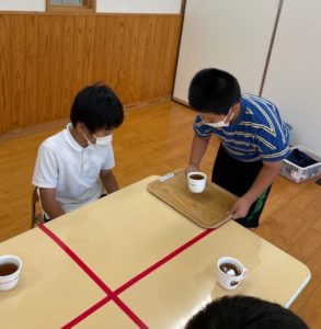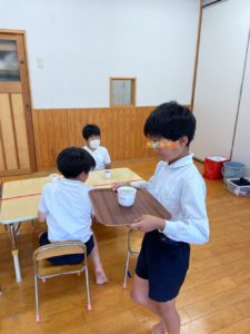 台を拭いて、お茶を注いで友達や保護者の方に運んでもらいました🍵