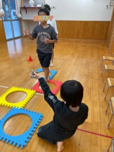 友達との助け合い、譲り合いのコミュニケーションを取りながら