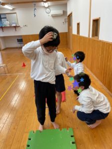 穴あきマットを渡ったり、