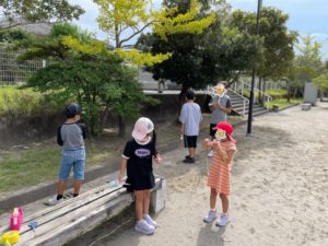 完成した飛行機をもって公園に行き、飛ばしました(^^♪