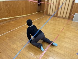 テープを避けたり…