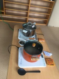 みんなで集まりをして、きちんと道具の使い方などやクッキングを楽しむためのお話を聞きます。