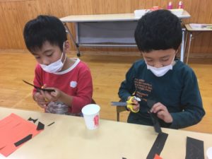 ハサミを使う作業はみんな集中しています~!