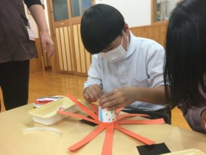 紙コップに画用紙を貼り合わせて、
