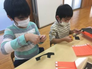 ハサミを使う作業はみんな集中しています~!