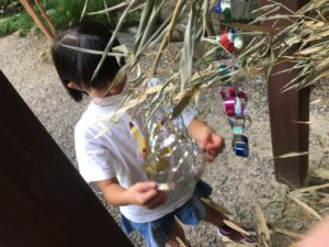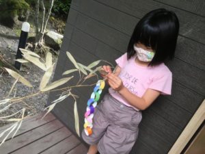 外の笹にも七夕飾りを飾りました