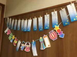 学童の子どもたちも短冊に