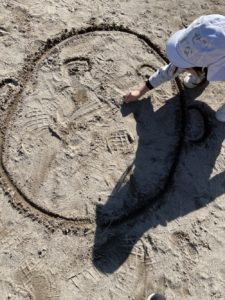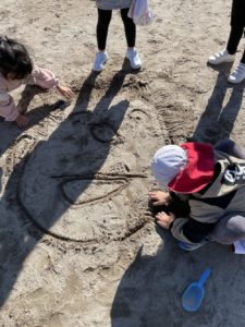 そんな中、園庭では福笑い遊びが始まっていました。