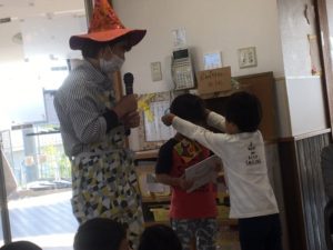 まずは先生からのプレゼントということで、ハロウィンにちなんだお話をしましたよ!