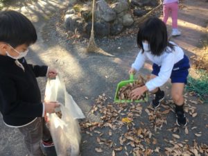 池の掃除の後には、どんぐり拾いに夢中でした。
