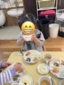 お汁のお皿も上手に持って飲めるよ!