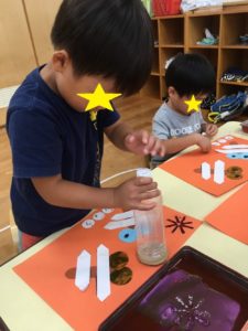 仕上げは、ペットボトルで作ったスタンプで模様をつけました👏