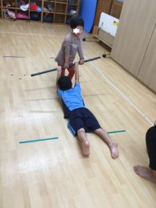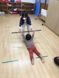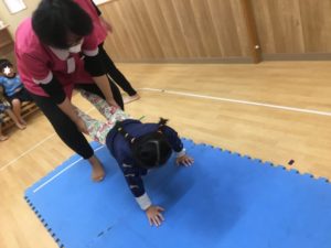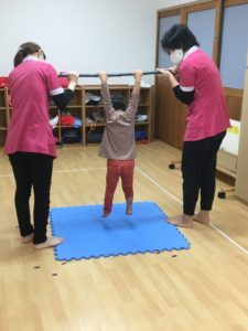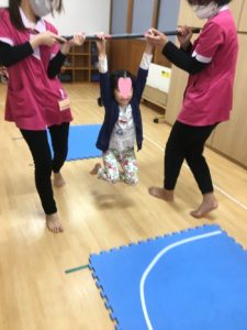 足を曲げてのぶら下がりで難易度アップ⤴️