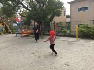 火曜日きりん組は、園庭で運動あそびを