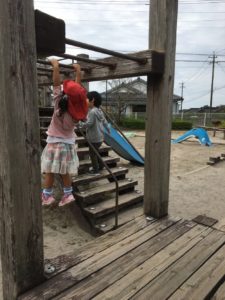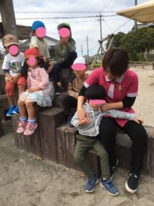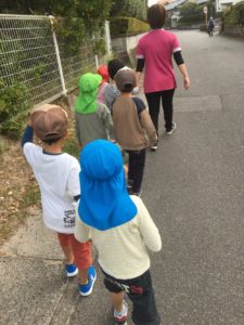 お友達と手を繋ぎ、道路の端を歩きます👣