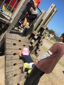 木製でできた遊具の段差を登ったり😄