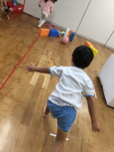 ピンを狙ってボールを転がし、お友達と交代しながら回数重ねていくうちに、、、