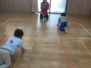 リトミックの四つ這いは、、背中のお手玉を