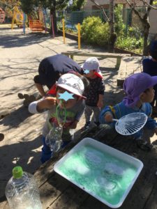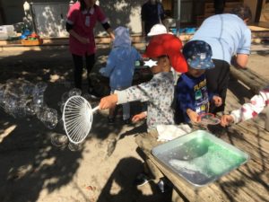 園庭に行き、シャボン玉大会😄