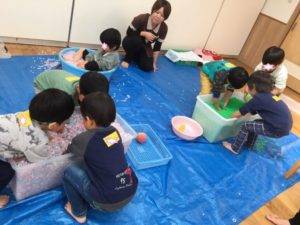 活動は、ピロの感触あそび❣️