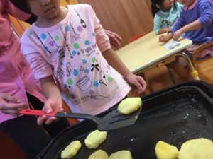 金曜午前のらいおん組とぱんだ組は、先週収穫したサツマイモ🍠を使って、クッキングをしました🍳