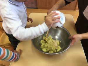 材料入れたら混ぜる❣️もちろんお友達と、協力しています🤝