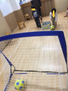 最後の練習は、サッカーゴールめがけてボールキック🥅