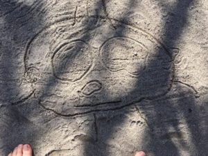 園庭が巨大キャンパスになり、お絵描きをしていました🖍