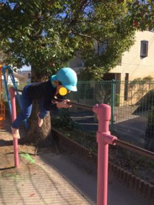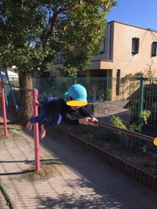 年長のお友達が、鉄棒渡りを披露👏綱渡りに近いので、バランスとるのはかなり難しいのですが、、、