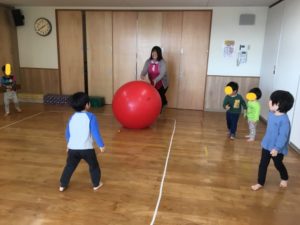 金曜日らいおん組は、ボールを使ってのリトミックからスタート🏁