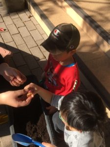 リトミックのあとは外に出て、チューリップ植え🌷です(^^)