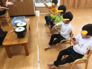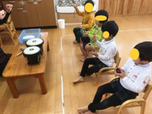 パーの合図で鳴らす♬グーの合図で休む♬を繰り返し、リズム打ちをしていました😄