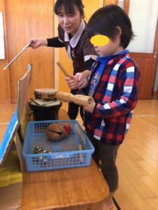 ウーン、この音だったかなぁ⁉️こっちかなぁ⁉️と、何種類もの楽器に触れて遊びました😃