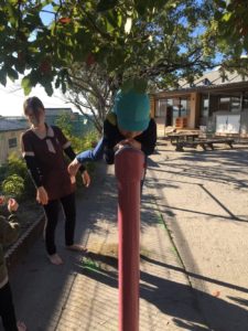 何やら壁面の後ろで、ミカ先生とお友達がしています😏一体なにを・・⁉️