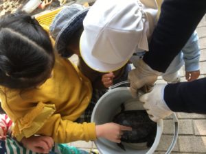 8日火曜日の自由あそびの時間は、亀のペコちゃんが冬眠の準備をしていました🐢