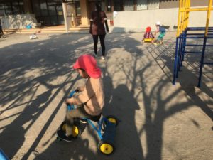 そして、園庭では乗り物でたくさん遊ぶ姿がありましたておし😃三輪車にうまくなれるようになったお友達や👏