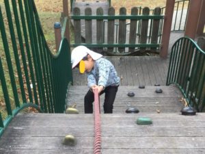 なかには、ロープを使わずに、足をホールドにかけながら、登っていくお友達もいました👏