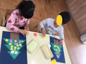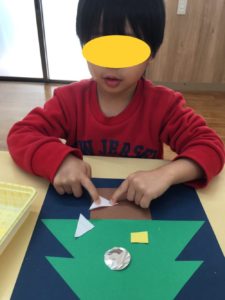 切った飾りののり付けもかなり上手になり、ペタペタ貼っていました👏