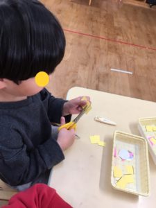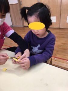 少し難しいお友達も、先生と一緒にチョキン✂️