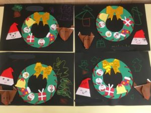クリスマスをイメージしたツリーの絵も台紙に描き、豪華な飾り絵になりました🤶