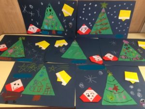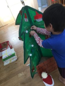 最後は、それぞれクリスマスをイメージしながら、ツリーに飾りをクレヨンで描いていきました😄