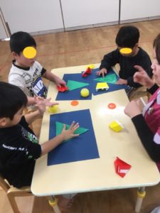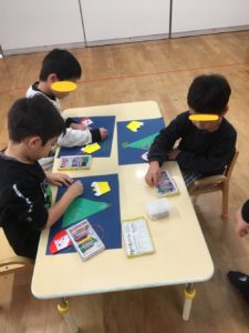 黄色の折り紙でスズも作っていきました🔔角合わせも丁寧にできます❣️