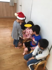 運んだプレゼントを、「どうぞ」「ありがとう」と言葉のやりとりをしながら、渡しました😃