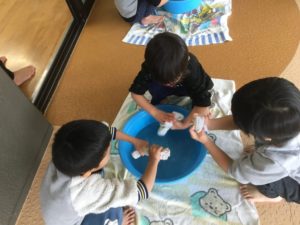 大掃除を頑張ったお友達、最後は、転がしドッジボールのごほうびが待っていました😀