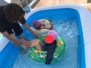 浮き輪を使って、バタ足で泳いでみたり🏊♂️