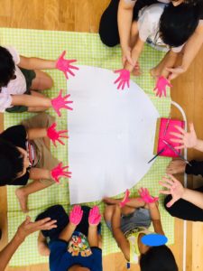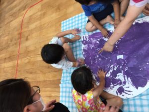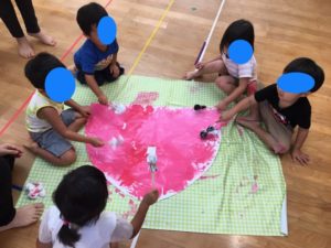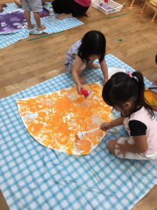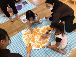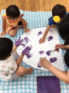 手のひらに絵の具をつけて、ペタペタ✋